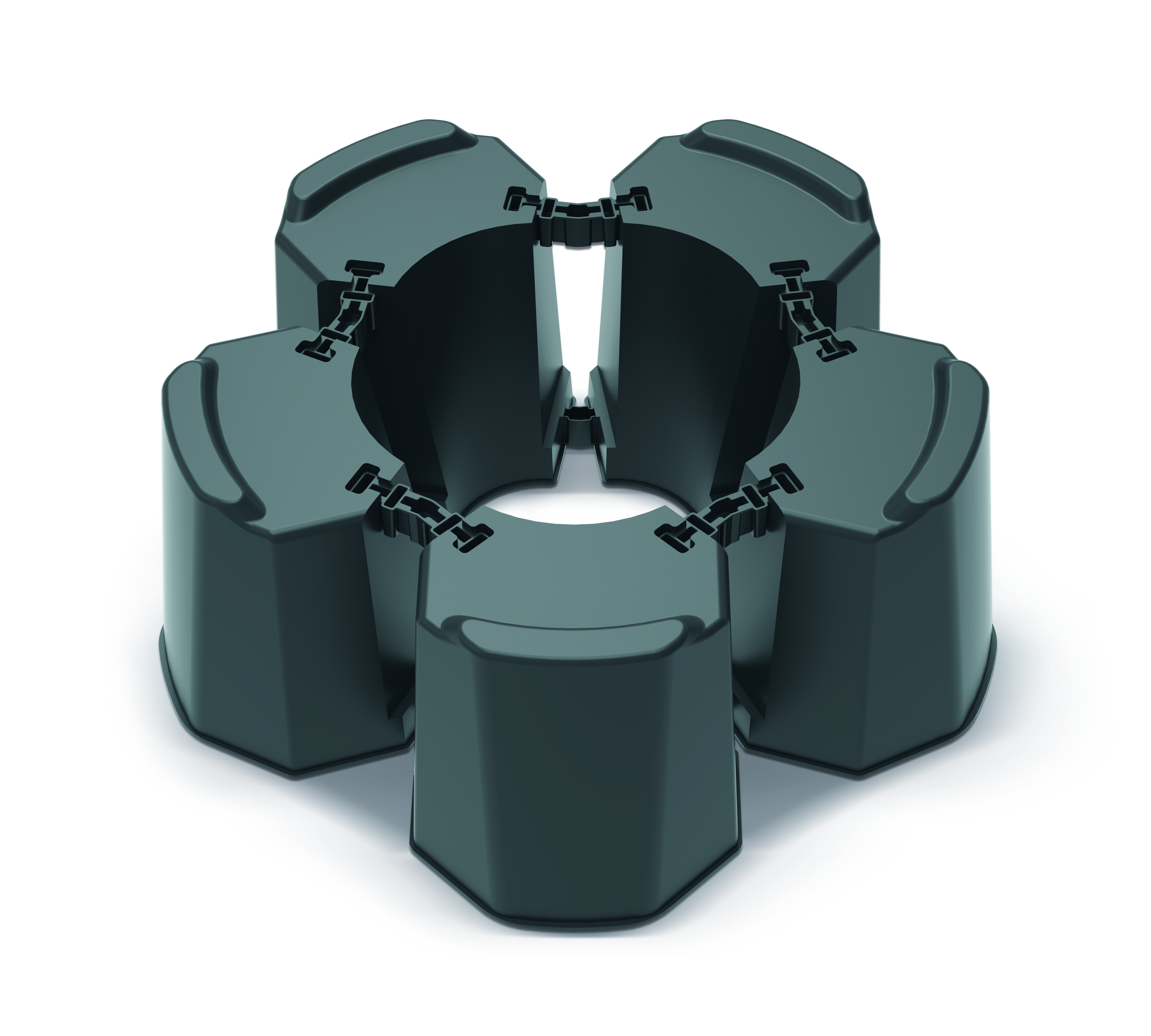 Modulbauweise: Je nach Durchmesser werden 5 Module mit jeweils 10 Verbindungselementen des passenden Typs (B-, C- oder D-Typ) genutzt.