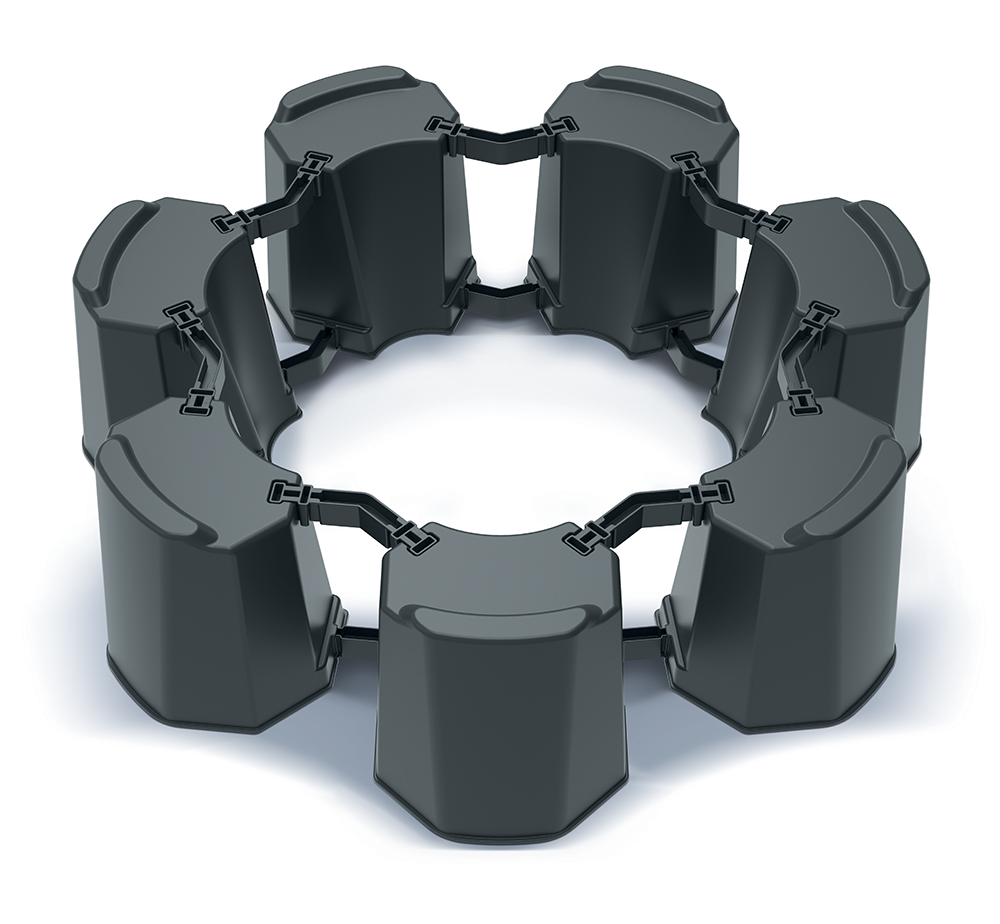 Flexible Durchmesserunterstützung: Passend für unterschiedliche Regenwassertanks durch variabel zusammensetzbare Module.