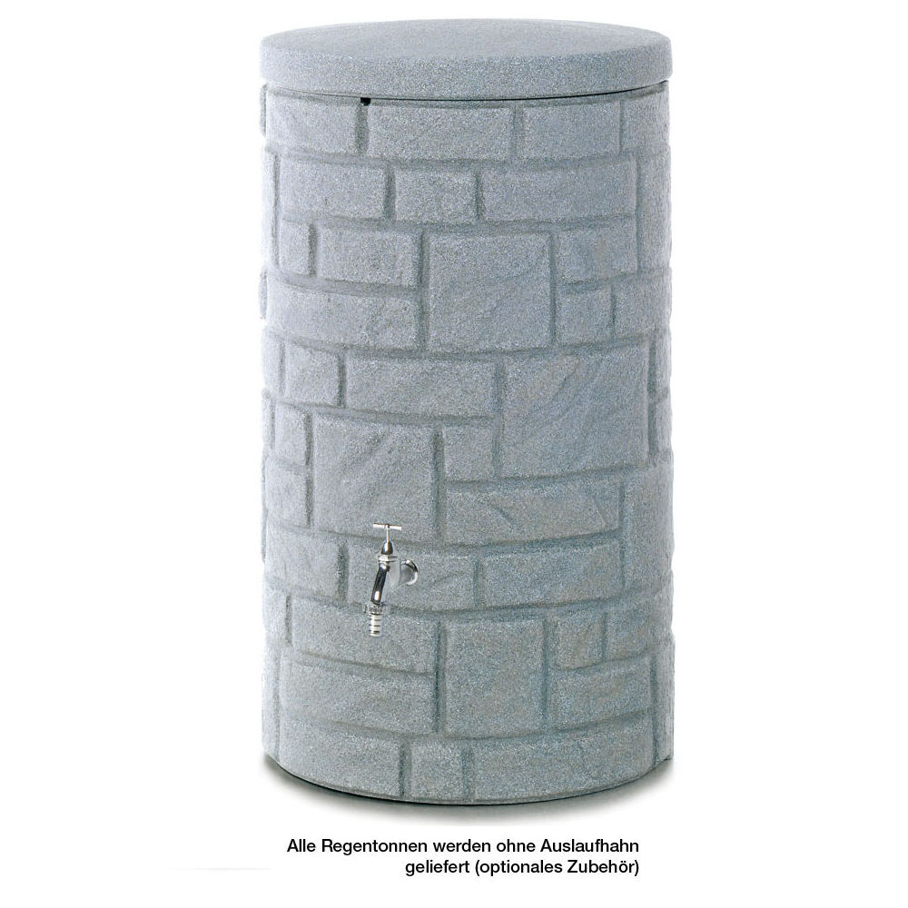 Diese Regentonne überzeugt durch ihre naturgetreue Nachbildung einer Natursteinsäule oder eines kleinen gemauerten Brunnen.