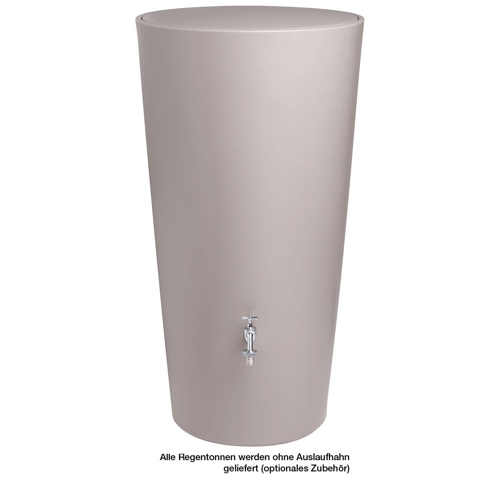 Mit seiner klaren Linie in modernem Design überzeugt diese Regentonne durch seine Funktion zur Regenwassernutzung und Deko gleichermaßen. Die formschöne Regentonne in den Farben taupe, betongrau und anthrazit ähnelt einer imposanten Vase und fasst bis zu 210 Liter Regenwasser.